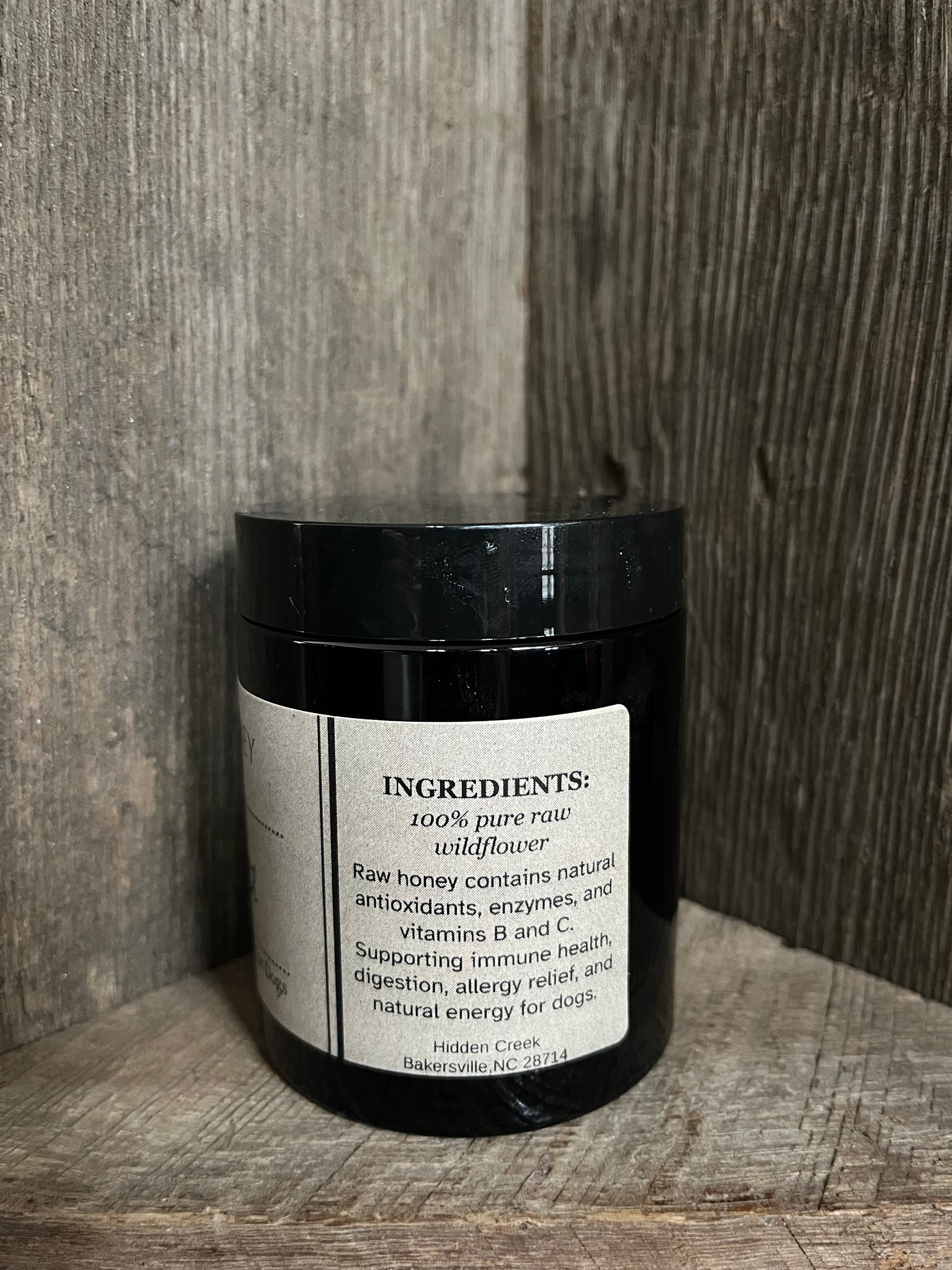 🐾 Skin & wound care support – Raw honey has natural antibacterial qualities and may be used topically for minor scrapes (with proper guidance).